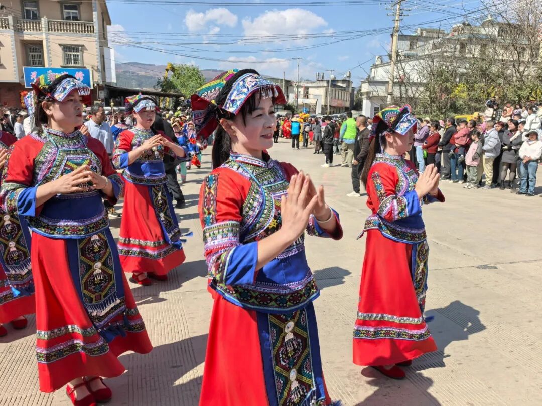关索戏队伍打头阵,四条祥龙紧随,腰鼓、花灯、龙灯等文艺队载歌载舞,巡香队伍沿北斗卫生院至龙泉寺一路送福,村民门前燃松毛、柏枝,行“打醋潭”民俗,满街皆是喜庆年味。